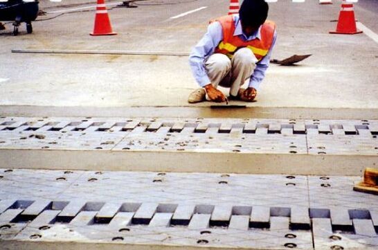 多向變位伸縮縫指的是為滿足橋面變形的要求,通常在兩梁端之間、梁端與橋臺之間或橋梁的鉸接位置上設置伸縮縫。要求伸縮縫在平行、垂直于橋梁軸線的兩個方向,均能自由伸縮,牢固可靠,車輛行駛過時應平順、無突跳與噪聲;要能防止雨水和垃圾泥土滲入阻塞;安裝、檢查、養護、消除污物都要簡易方便。在設置伸縮縫處,欄桿與橋面鋪裝都要斷開。